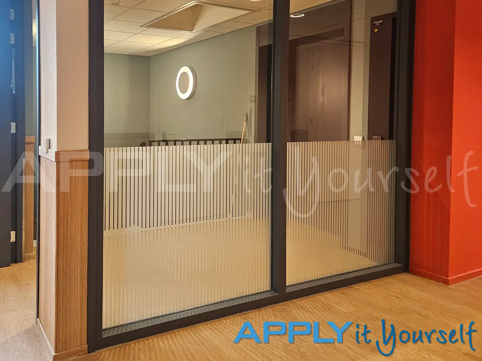 Frosted window film giving you complete or partial privacy for your business or at home. With your design elements, texts, street name, house number, and logo you can create the openness of your frosted window film you desire. Design it yourself online, using our online designer, or just upload you finished design. Online frosted window film design. Also see the online design specifications.